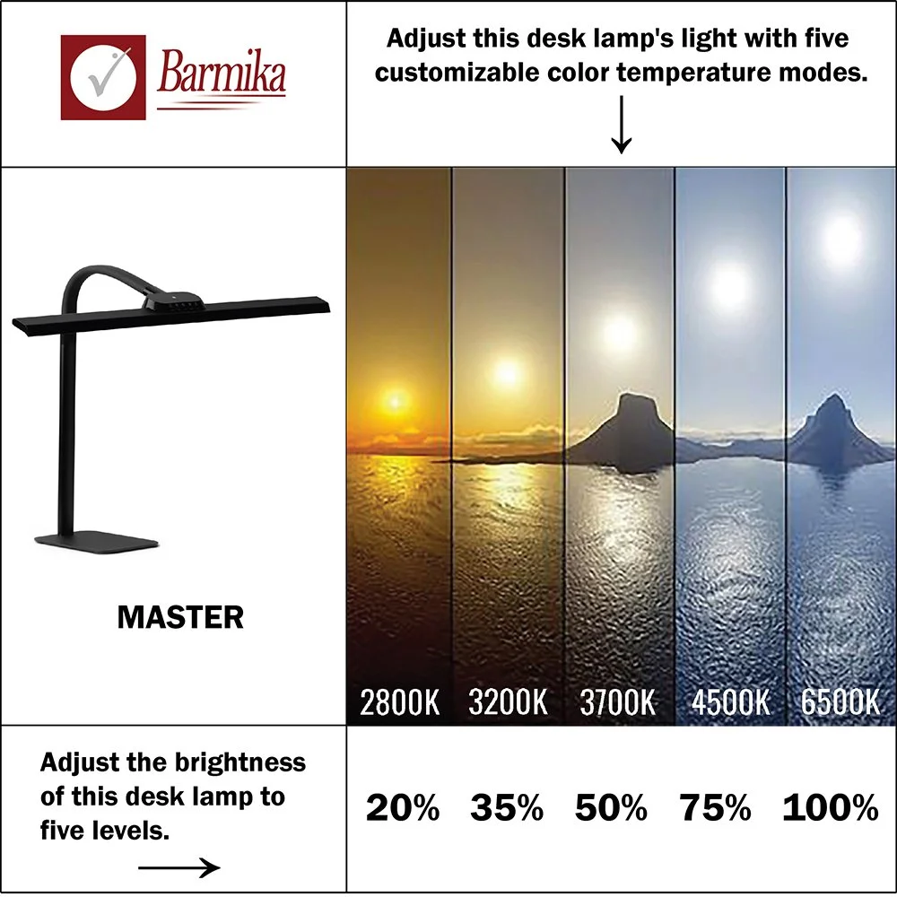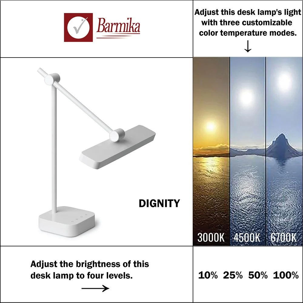Barmika desk lamps are crafted to be practical, energy-efficient, and aesthetically pleasing. Perfect for desktops, bedside tables, and home office workstations, they also fit naturally into dorms, study areas, and creative workspaces.Certified Quality You Can Trust