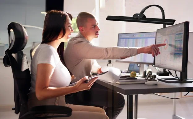 Achieve exceptional lighting with this tall black LED clamp lamp, a powerful task light for desktops, drafting tables, and creative spaces. Featuring a clamp-on base and wide light bar, it provides bright, eye-caring LED illumination with stepless dimming and five color temperature modes. The flexible gooseneck arm offers full overhead reach, perfect for dual monitors, sewing, puzzle solving, or office tasks. Responsive touch control, auto-sensing, and a built-in timer add modern convenience. Wide and powerful, this clamp desk lamp saves valuable space while delivering precise, even light across large surfaces. Ideal for architects, artists, and students, it’s one of the best desk lamps for productivity and creativity. Finished in sleek black with trusted quality, it blends modern design with reliable performance for home offices and professional setups.